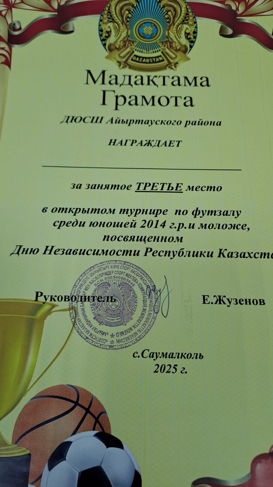 2025 жылғы 12 желтоқсанда Саумалкөл ауылында Қазақстан Республикасының Тәуелсіздік күніне орай 2014 жылы туған және одан кіші жастағы ұлдар арасында аудандық футзал жарысының ашық турнирі өтті.