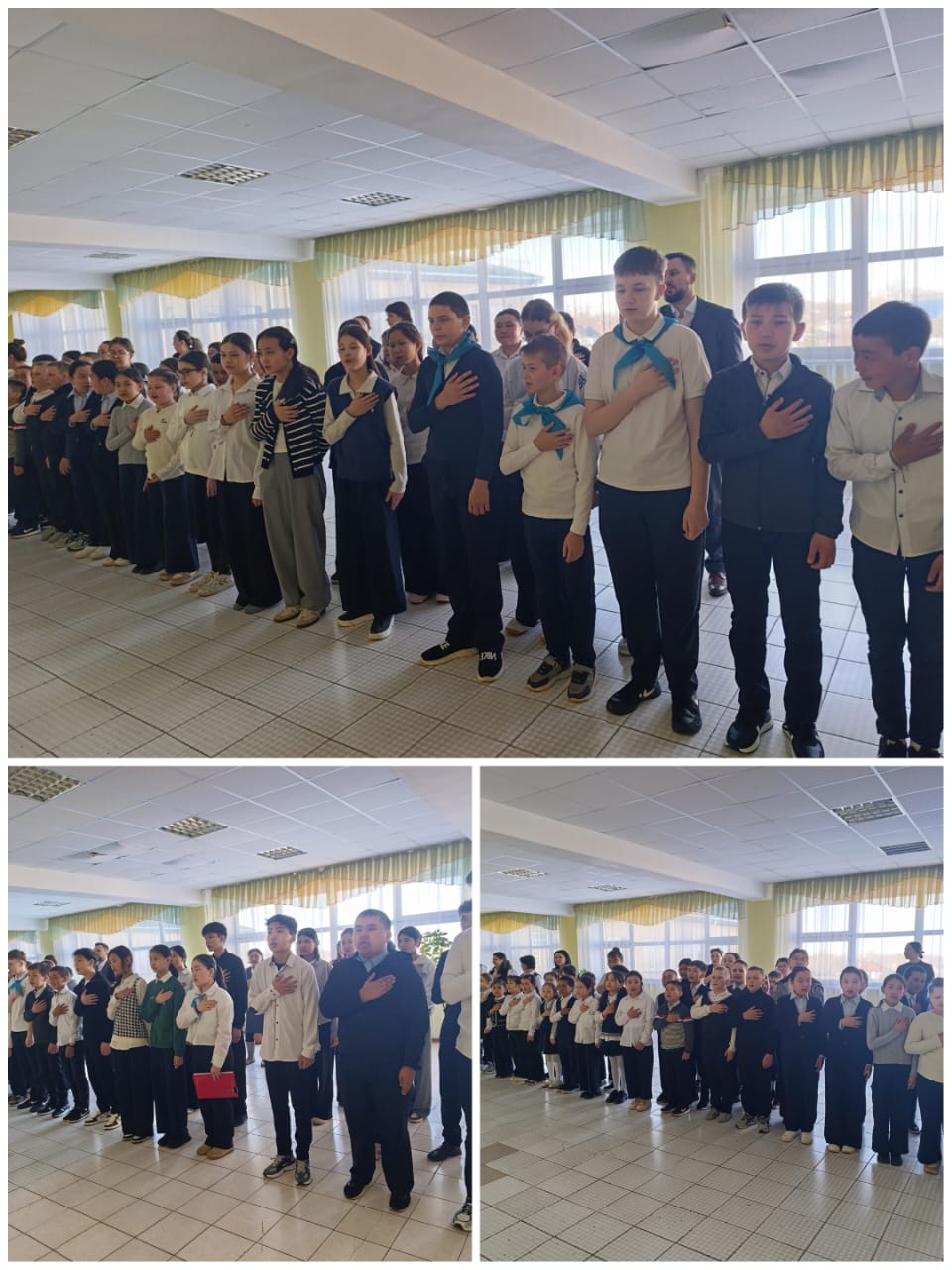 В понедельник была проведена общешкольная линейка. В ходе мероприятия был исполнен Государственный гимн Республики Казахстан, что способствовало укреплению патриотического воспитания учащихся. Также в рамках экологического месячника «Зелёный регион – созидательное будущее» члены школьного Парламента провели разъяснительную работу по акции «Таза Казахстан», направленную на формирование экологической культуры и бережного отношения к окружающей среде