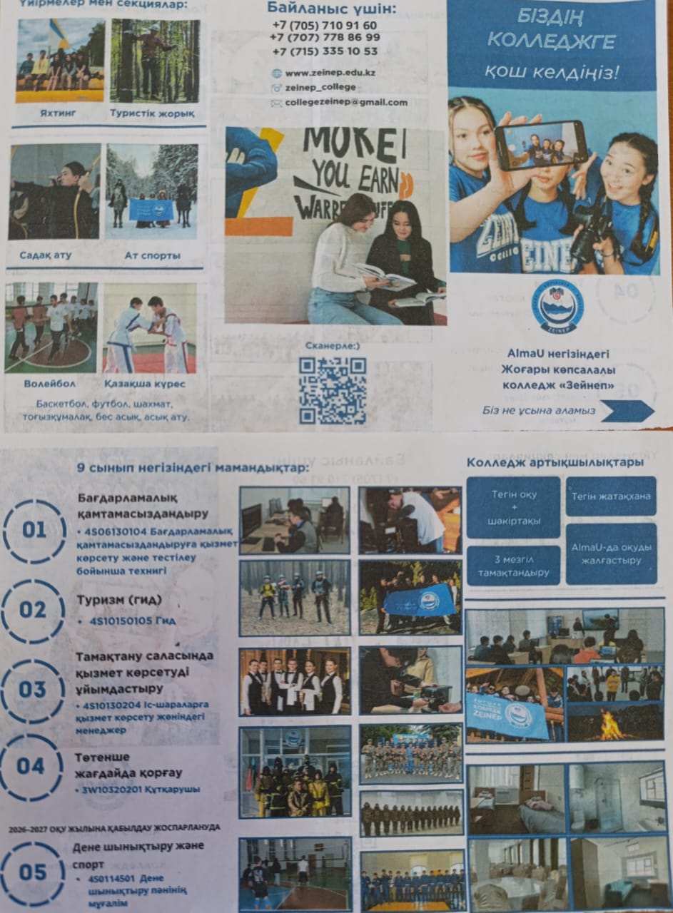 2026 жылғы 12 қаңтарда 9–11 сынып оқушыларына болашақ мамандықты таңдауға арналған кәсіби бағдар беру лекциясы және таныстыру кездесуі өткізілді.