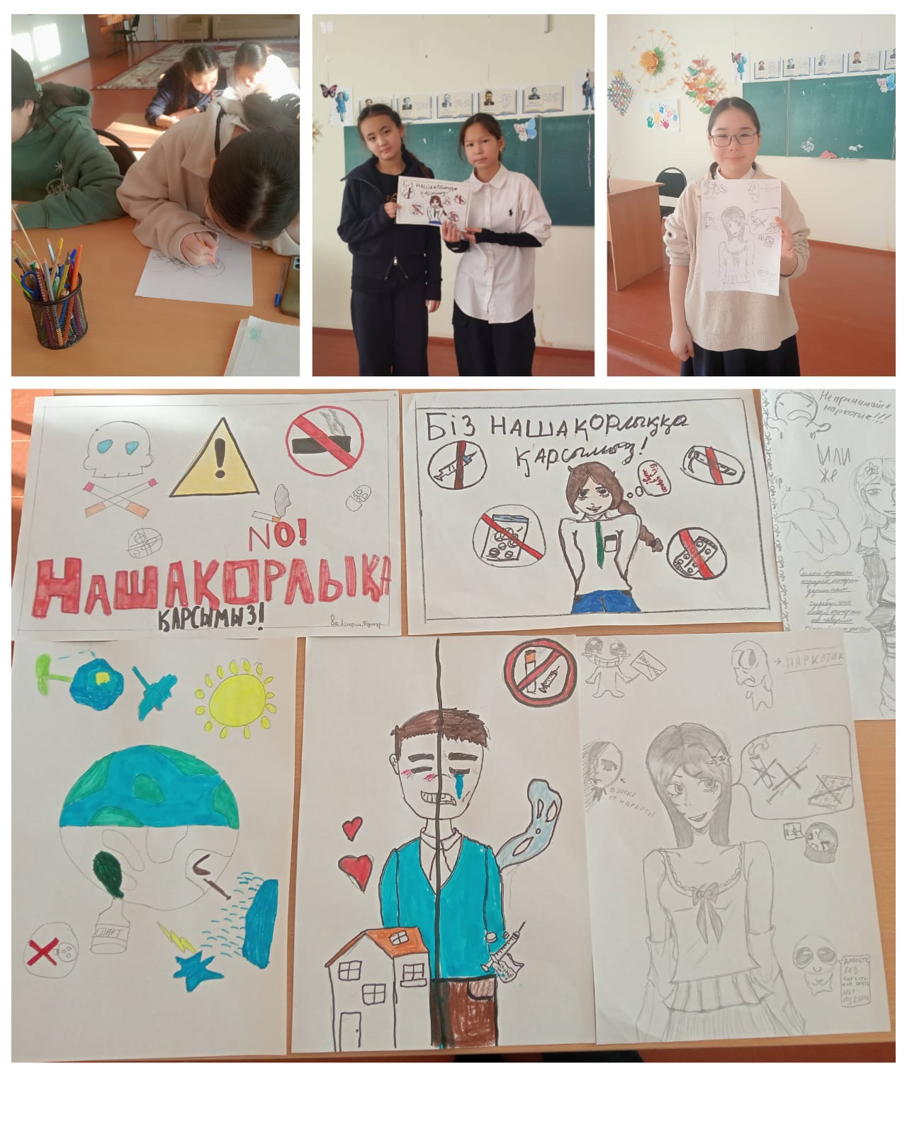 «Жас Ұлан» балалар мен жасөспірімдер ұйымының жылдық жұмыс жоспарына сәйкес, 2025 жылы мектепте 5–11 сынып оқушылары арасында «Нашақорлыққа жол жоқ» тақырыбында сурет байқауы өткізілді. Байқаудың мақсаты – оқушыларды салауатты өмір салтына тәрбиелеу, зиянды әдеттердің алдын алу, шығармашылық қабілеттерін дамыту.