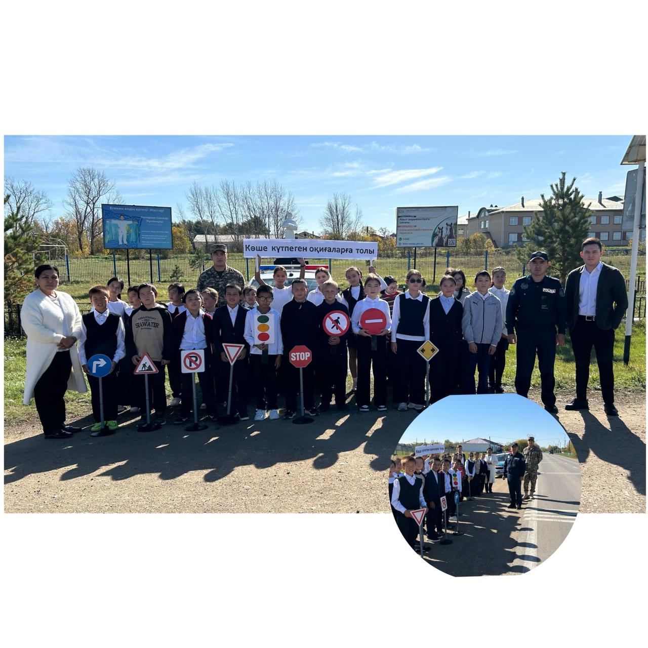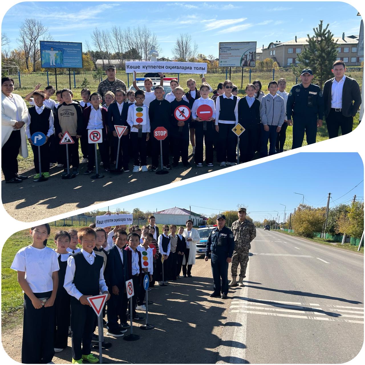 «Көше күтпеген оқиғаларға толы» тақырыбында жолда жүру ережелері түсіндіріліп, оқушыларға көшедегі қауіпсіздік шаралары