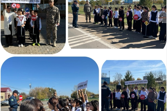 «Көше күтпеген оқиғаларға толы» тақырыбында жолда жүру ережелері түсіндіріліп, оқушыларға көшедегі қауіпсіздік шаралары