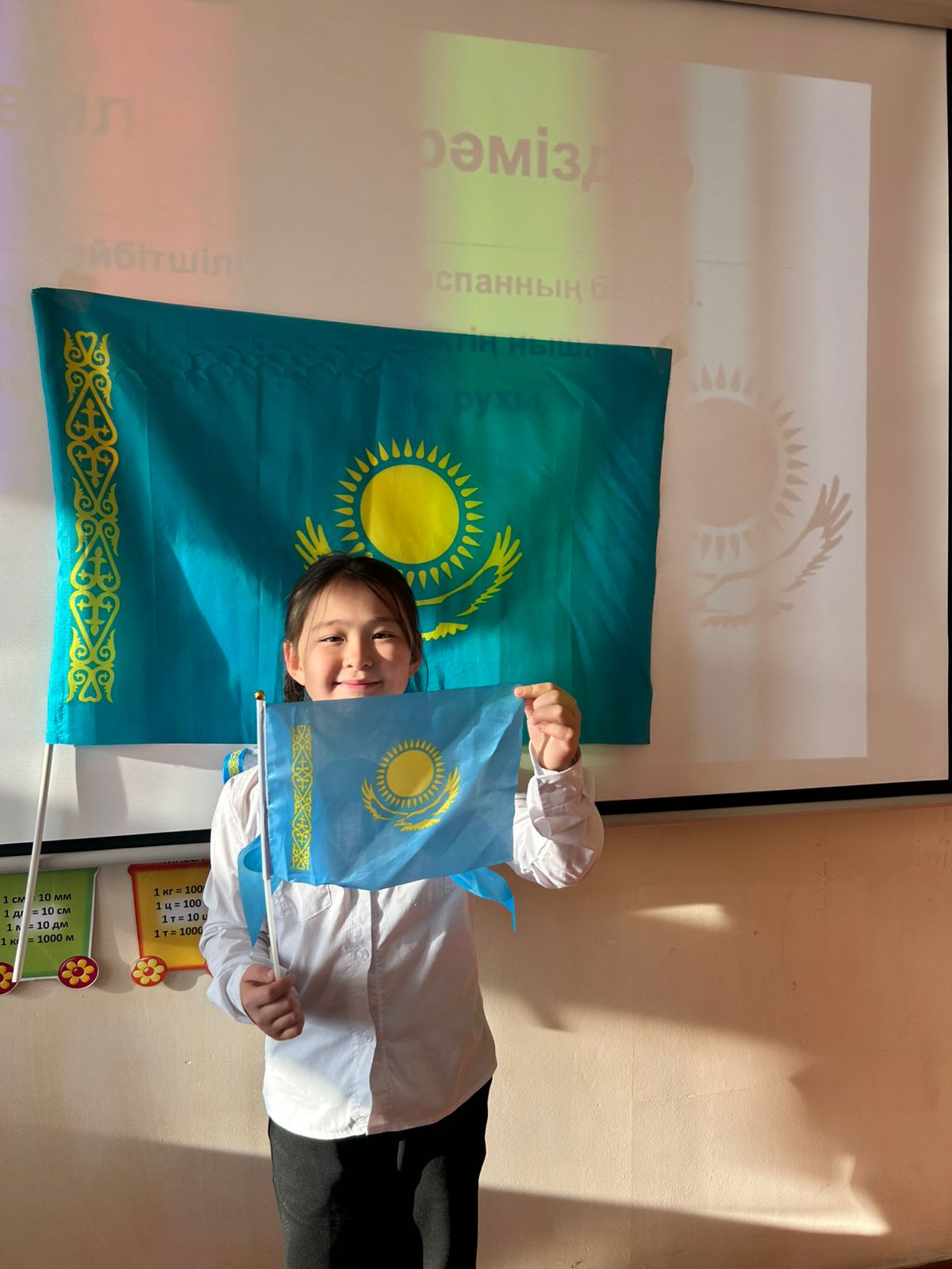 В преддверии Дня Республики Казахстан в 2 «А» классе прошёл классный час, посвящённый Дню Государственного флага.